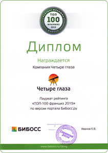 С радостью сообщаем вам, что компания «Четыре глаза» вошла в список самых выгодных и надежных франчайзинговых компаний в России на 2015 год.